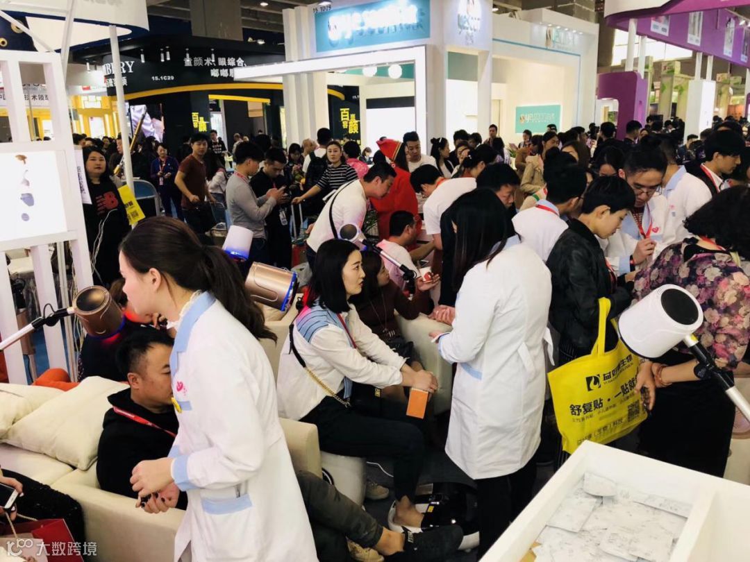本次美博会纽得赛携“科爱元素”品牌强势参展,36平米时尚展位以其独特造型在众多展位中赚足了眼球,来往的观展商都驻足停留,科爱元素独树一帜的参展主题:“三块钱开一个艾灸项目”引起了不少行业人士的兴趣,行业经营者们纷纷前来咨询:“怎么开艾灸项目?”“为什么只要3块钱?”“你们的艾灸仪真的不要钱吗?”......一下子将科爱元素展馆围堵得水泄不通。