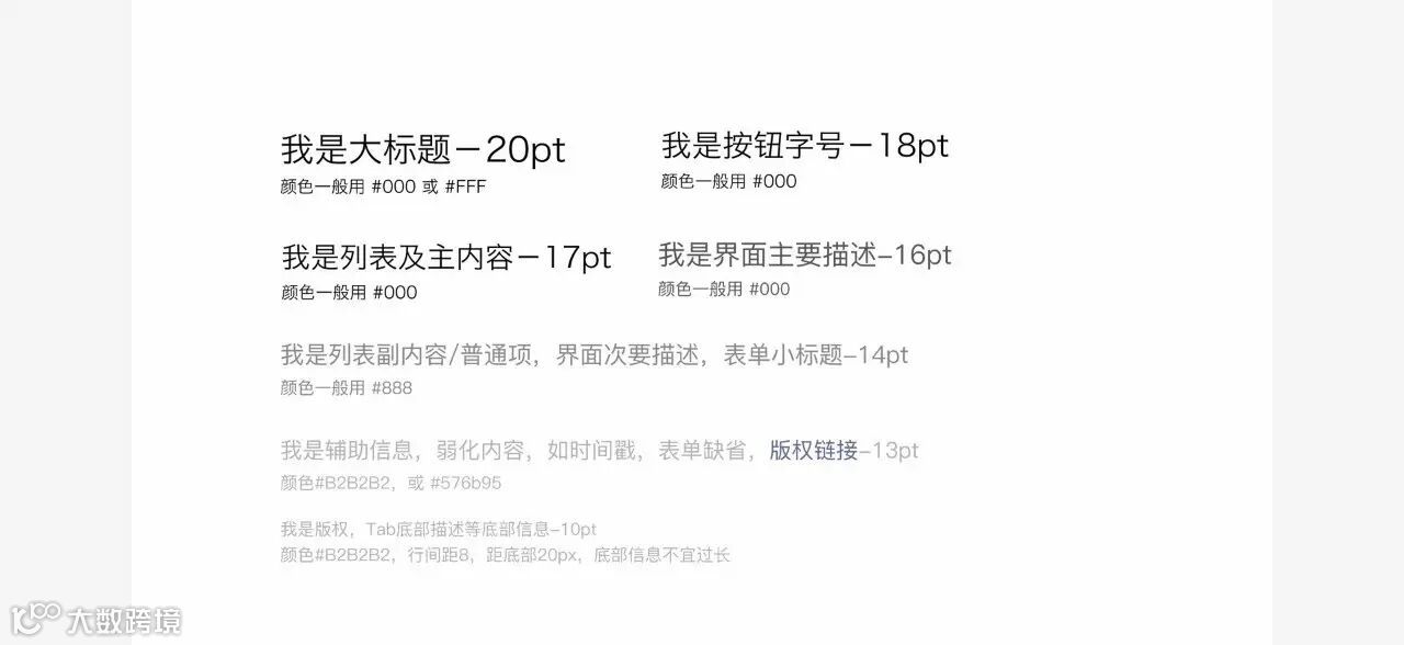 为了更好地进行一致性设计,最新的设计源文件里面还提供了相应的字体文件。中文字体使用了苹方(iOS)和思源黑体(Android),英文则是SF UI Display(iOS)与Robot(Android)。