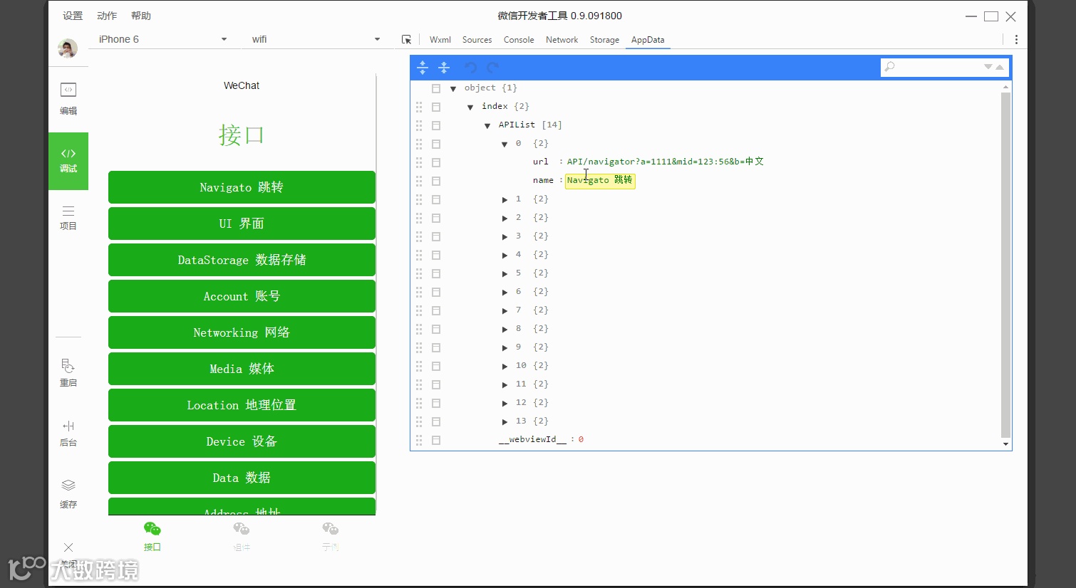 开发者工具调试界面
