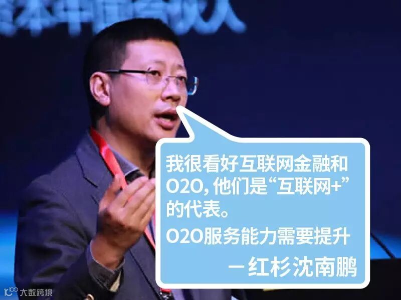 沈南鹏:我很看好互联网金融和O2O,他们是“互联网+”的代表。O2O是用互联网改造线下服务,互联网金融就是改造金融服务业,两个巨大的市场,也有很多被改造的理由。前者因为服务分散,效率不高。后者服务能力需要提升。(内容摘自沈南鹏接受记者采访的发言)