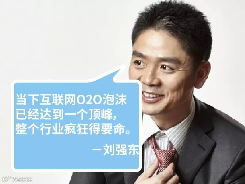 刘强东:我觉得,当下互联网O2O泡沫已经达到一个顶峰,整个行业疯狂得要命。有一个估值达两亿美元的二手车APP公司,其实际交易量少得可怜,只有两辆成交,而且还是他们自己员工买的。