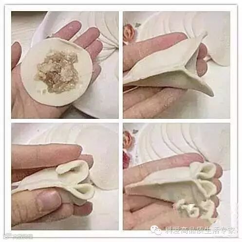 4、百褶裙饺子。可以说这是褶子饺的升级版吧,在包进馅料之前,将2/3个饺子皮整出一堆褶皱,然后塞入馅料,对折捏好就成了。