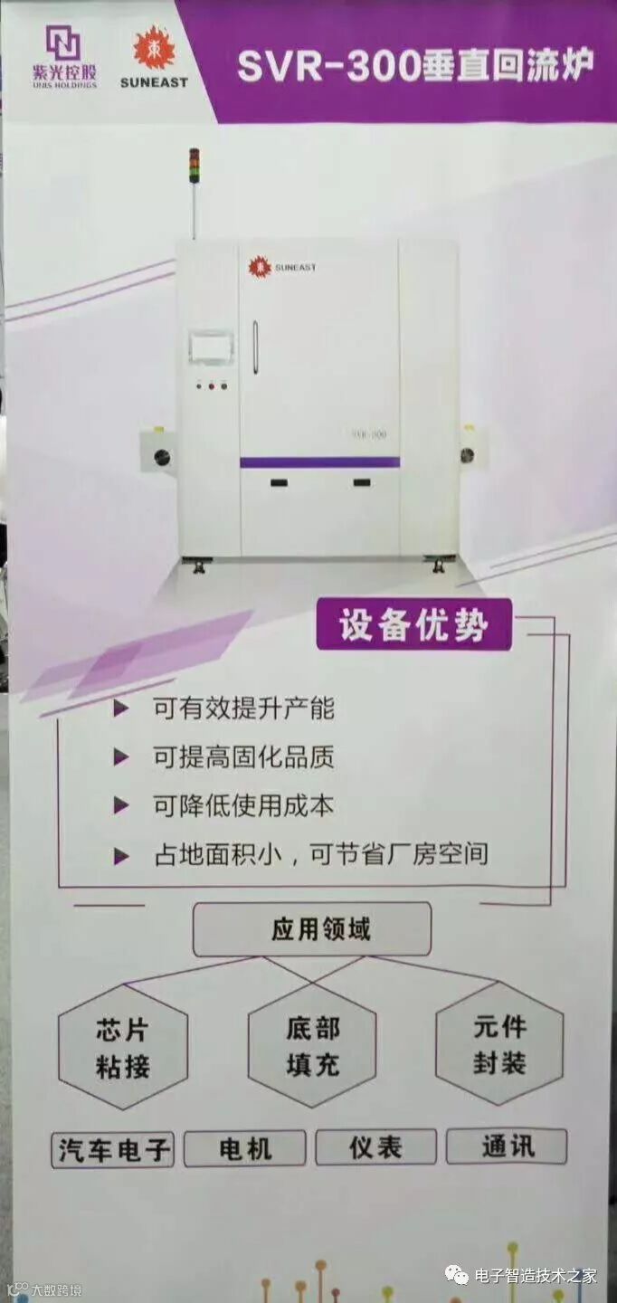 市场对产品小型化的要求使倒焊片与DCA(芯片直接焊装)的应用越发的广泛。倒焊片技术是将芯片倒装后用焊球将其与基板直接焊接,这样可以提高信号传输速度及减少尺寸。另一种是底部填充工艺,这是将填充材料灌注入芯片与基板之间的空隙中,这是因为芯片与基板材料之间膨胀系数不一致,而填充材料则能保护焊点不受这种应力的影响。还有是球状封顶以及围坝填充技术,这两种技术是用覆盖材料将已焊接的裸芯片加以封装的工艺。几乎所有这几种封装材料都需要很长的固化时间,所以用在线式连续生产的固化炉是不实际的,平时大家经常使用“批次烘炉”,但垂直烘炉的技术也趋于完善,尤其在加热曲线比回流炉简单时,垂直烘炉完全能够胜任。垂直烘炉使用一个垂直升降的传送系统作为“缓冲与累加器”,每一块PCB都必须通过这一道工序循环。这样的结果就是得到了足够长的固化时间,而同时减少了占地面积。
