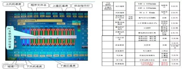 设备的程序选择、参数设置及相关监控、点检措施,是保证炉温状态的根本措施。包括:各温区设定温度、实际温度、风机速度、链速等等,并且要求设备有自动报警功能。