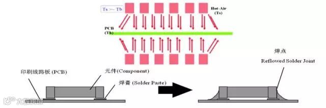 回流焊就是通过大量加热,使锡膏受热融化从而让表面贴装元器件和PCB焊盘通过焊锡膏合金可靠地结合在一起的制程。