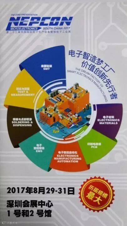 2017年8月29-31日,第二十三届华南国际电子生产设备暨微电子工业展(NEPCON South China 2017)将在深圳会展中心1号馆和2号馆隆重拉开帷幕。