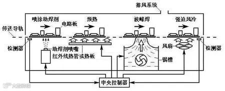 下图為波峰焊PCB的焊接流程图