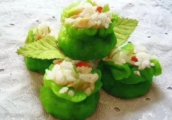 4)拌好的糯米包入面皮;收口,做成花瓶的形状;做好了上锅蒸十五分钟就可以了。