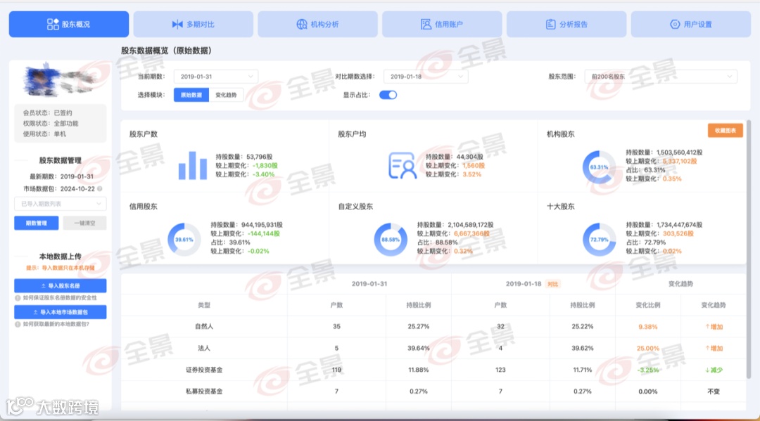 本次升级后新增本地深度数据包,将股东名册数据与市场数据结合起来,大幅提升数据分析能力。