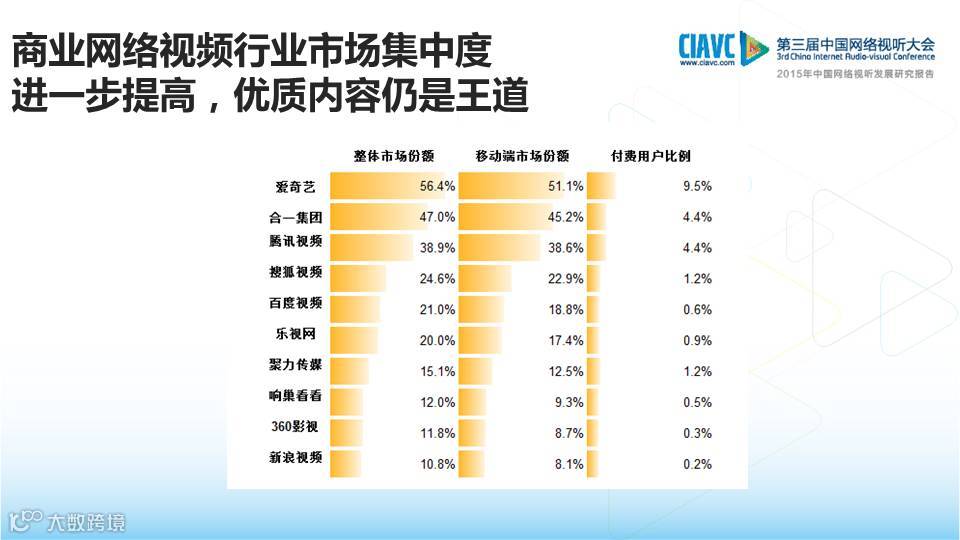 5.商业网络视频行业市场集中度进一步提高,优质内容依然是王道