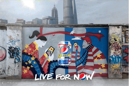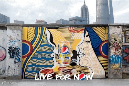 几天之后,又在其平台上开始了第二波传播。这一次,与涂鸦艺术家们跨界合作,用早期逐帧手绘动画的形式,将新罐罐身图案,变成了Pepsi “Gif-iti”。视觉力量与情怀质量上均作了匠心加工,叫板靠实力。