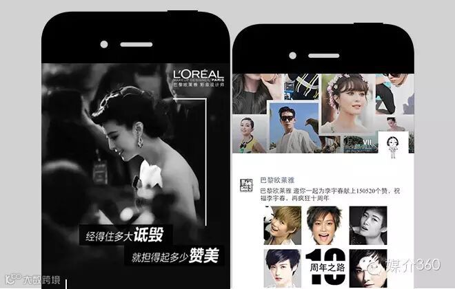 2015戛纳电影节期间,巴黎欧莱雅自制的明星朋友圈刷屏你的朋友圈,“你离戛纳电影节仅一个二维码的距离”,那就扫一扫绑定手机号码后,随后会看到巴黎欧莱雅的明星墙H5动画,紧接着就进入了明星朋友圈,采集你的头像照片,模拟了你的朋友圈,刷出的都是本届前往戛纳电影节的明星,当然他们也是巴黎欧莱雅的各国代言人,与此同时,你还可以留言点赞,这种参与感确实很奇妙,即使圈儿中的内容非常官方,但这种与明星做好友的环境设置还是让不少粉丝小激动了一把。