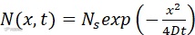 (2)λt ≤1/4 时,再分布起主要作用,杂质剖面呈高斯分布;