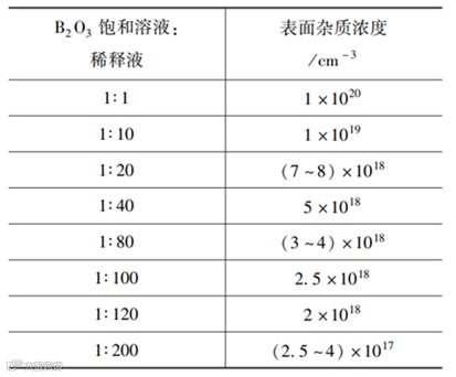表1 硼源稀释度与表面杂质浓度的关系