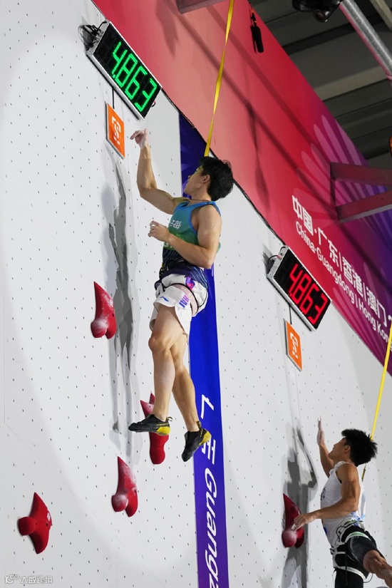 2025年更是赵一程的爆发之年。3月,在海南白沙举行的国家攀岩集训队国际比赛选拔赛中,他在关键轮次接连爬出4秒76、4秒68和4秒65的成绩——接连超过了全国纪录和世界纪录,让世界看到了中国攀岩少年的速度力量。