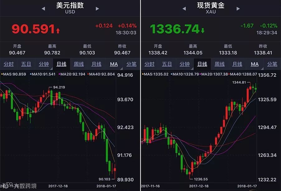 8、【美元指数/现货黄金】截至2018年1月17日18:29