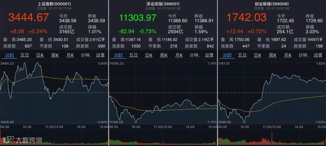 2、【两市融资余额增加56亿元】截至1月16日,上交所融资余额报6259.93亿元,较前一交易日上升44.95亿元;深交所融资余额报4247.96亿元,较前一交易日上升11.07亿元;两市合计10507.89亿元,较前一交易日上升56亿元。(新浪财经)