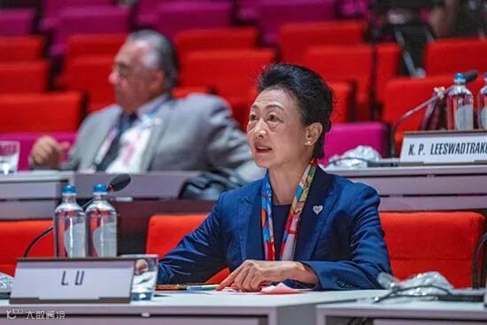 7月23日,中国奥委会副主席李玲蔚在法国巴黎举行的第142届国际奥林匹克委员会全会上。新华社记者 孙非 摄