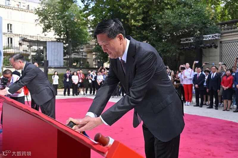 (国家体育总局局长、中国奥委会主席高志丹与中国驻法国公使陈力为“中国之家”钤印)