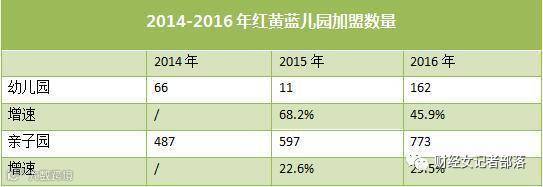 此外,有数据统计,红黄蓝幼儿园加盟数量都有所增加,且在2016年的时候增加了162家,截至2017年6月30日,红黄蓝已有直营园80家,加盟园175家,亲子园853家(直营+加盟)。