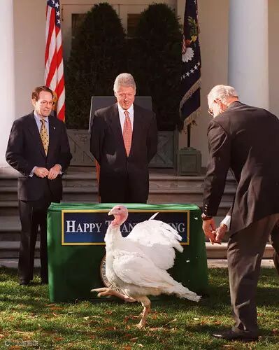 1998年,时任美国总统的克林顿,在白宫玫瑰花园,准备赦免当年的国家感恩节火鸡杰瑞。然而在这一年的感恩节上,克林顿却遭遇了一只不听话的火鸡。这只名为“杰瑞”的火鸡从饲养人沃尔特手上挣脱,在白宫草坪上乱跑一通,似乎不屑于被总统赦免。