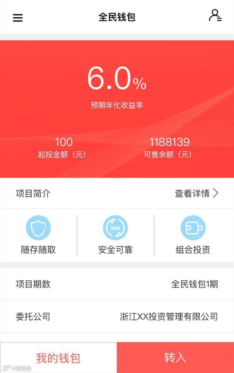 全总今天给大家推荐一款理财神器,全民钱包活期理财平台,T+1生息,随存随取,年化收益率6%,100元起投,比存银行和余额宝强多啦。