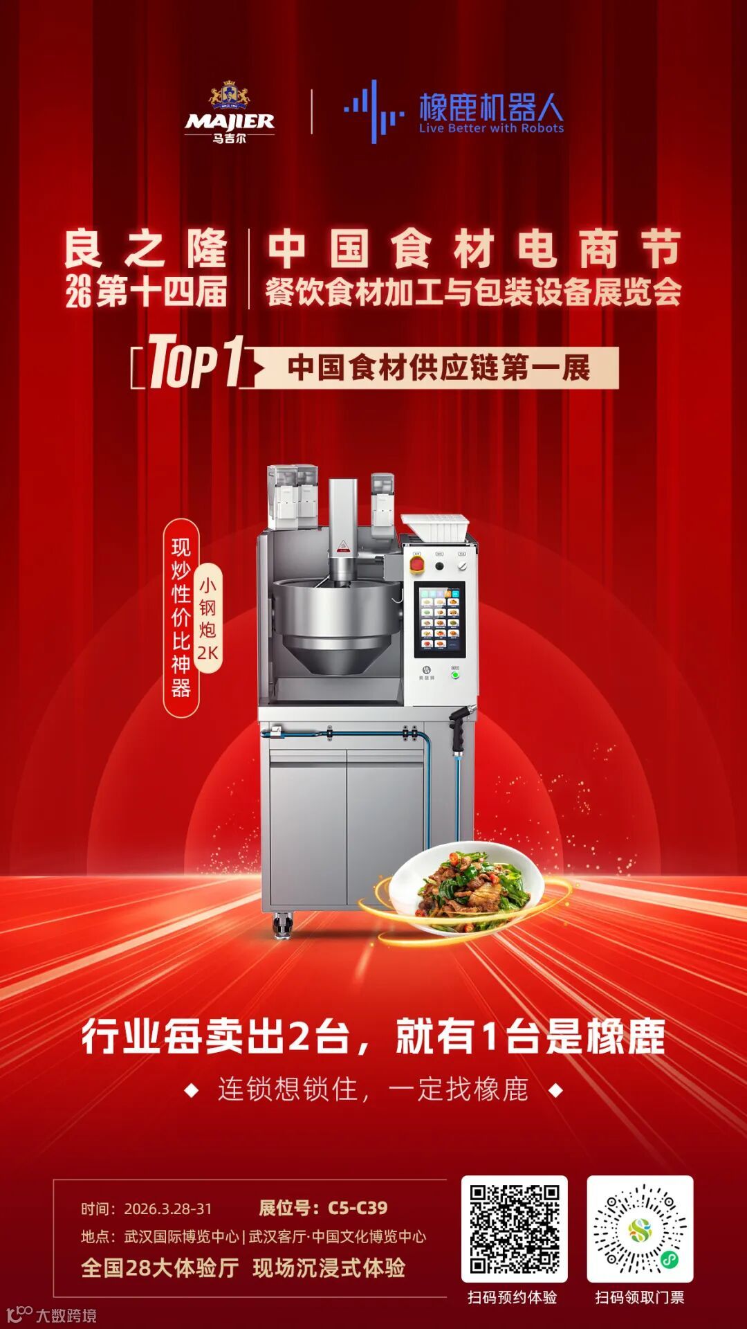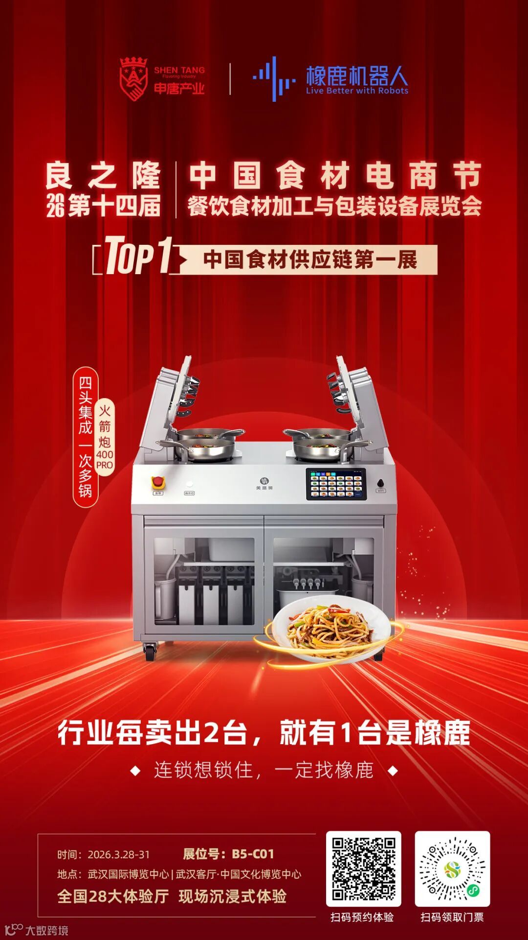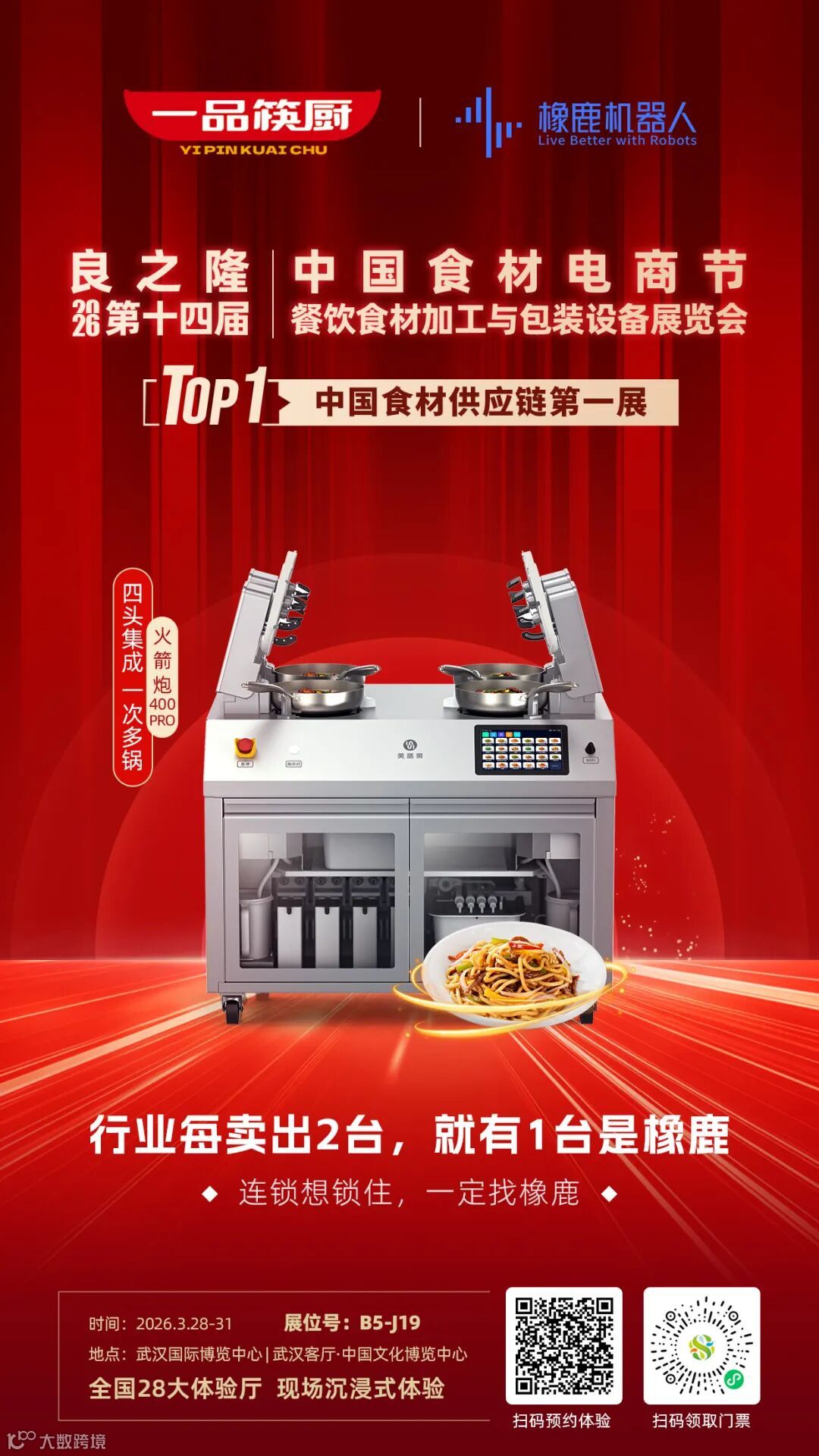 身为行业领导者,橡鹿机器人受海天酱油、加加酱油、麻辣红包等18家生态伙伴的邀约,将在良之隆18个展位同台展出,创下行业之最。