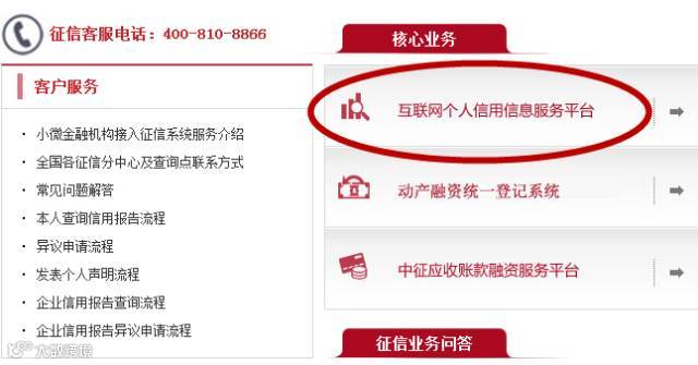 登录中国人民银行征信中心(http://www.pbccrc.org.cn/),点击互联网个人信用信息服务平台