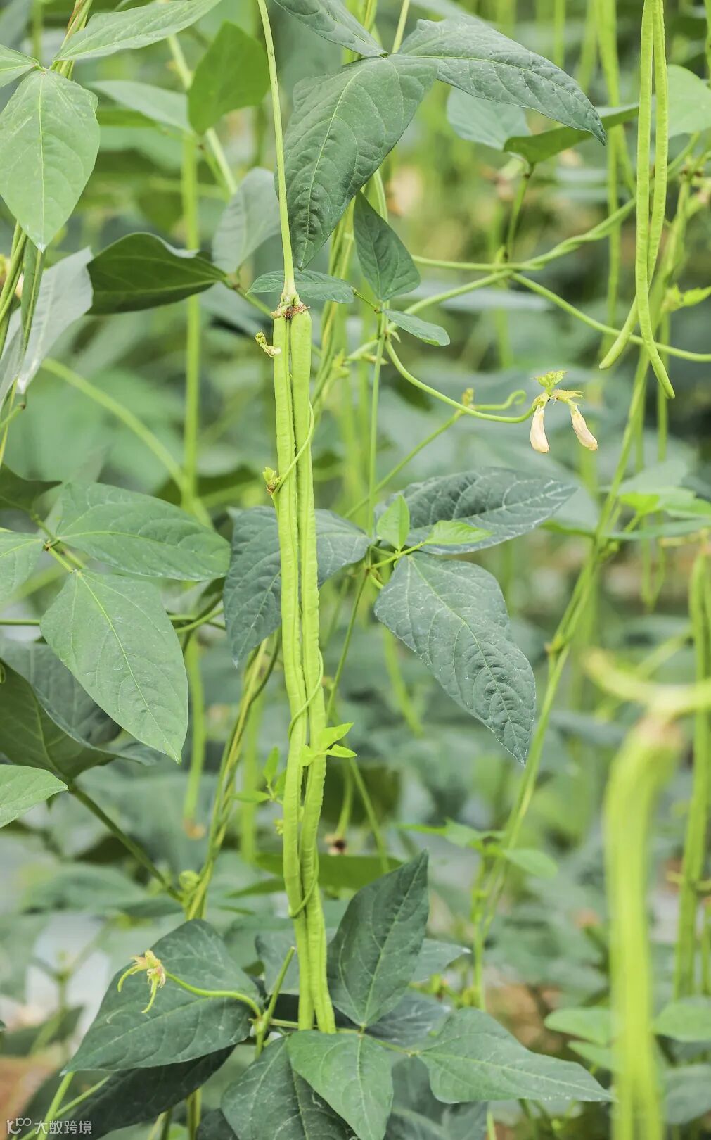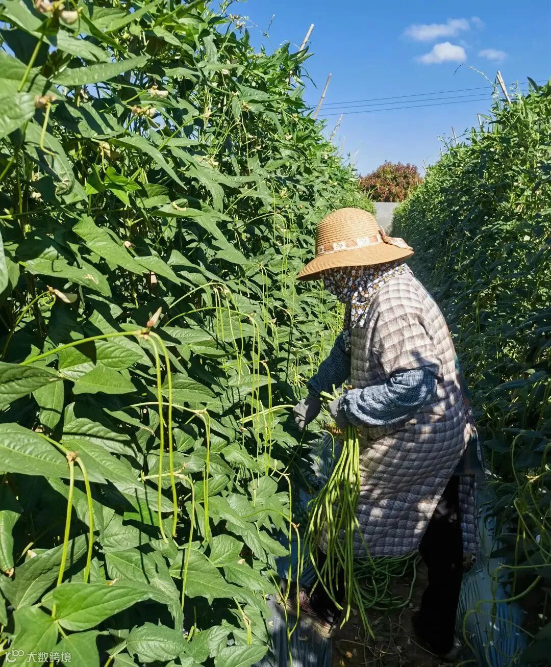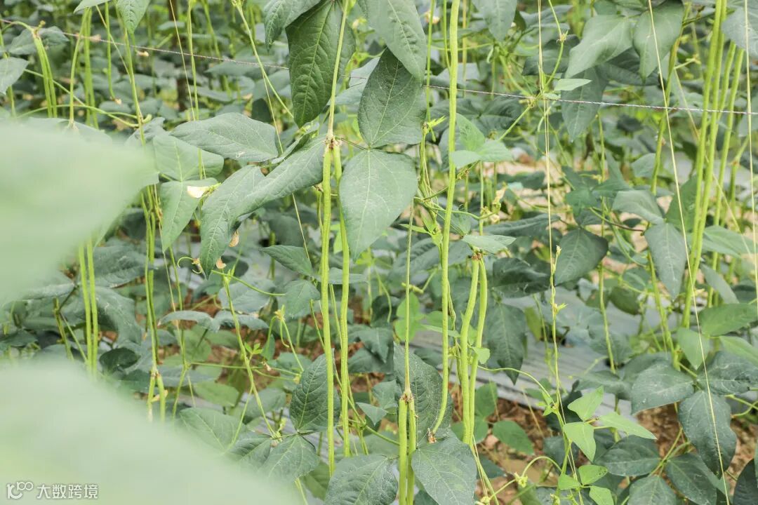 清明前后,种瓜点豆,如今正是豇豆丰收的时节。郁郁葱葱的藤蔓爬满了架子,微风轻拂之下,它们尽情舒展长而曲折的身体,青青细细的豇豆齐刷刷地垂挂在支架两旁。