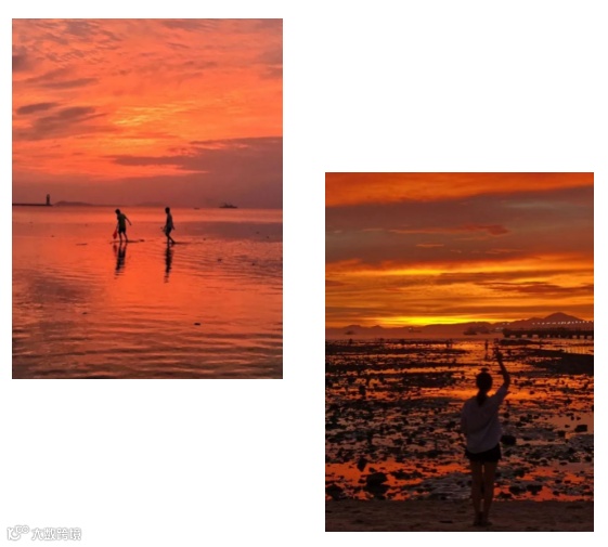 游人常常被这如梦如幻的美景吸引而来,或静静伫立在沙滩上,任海风轻拂面庞,或嬉笑追逐余晖,任心绪沉醉于那片波光粼粼的橙色海。