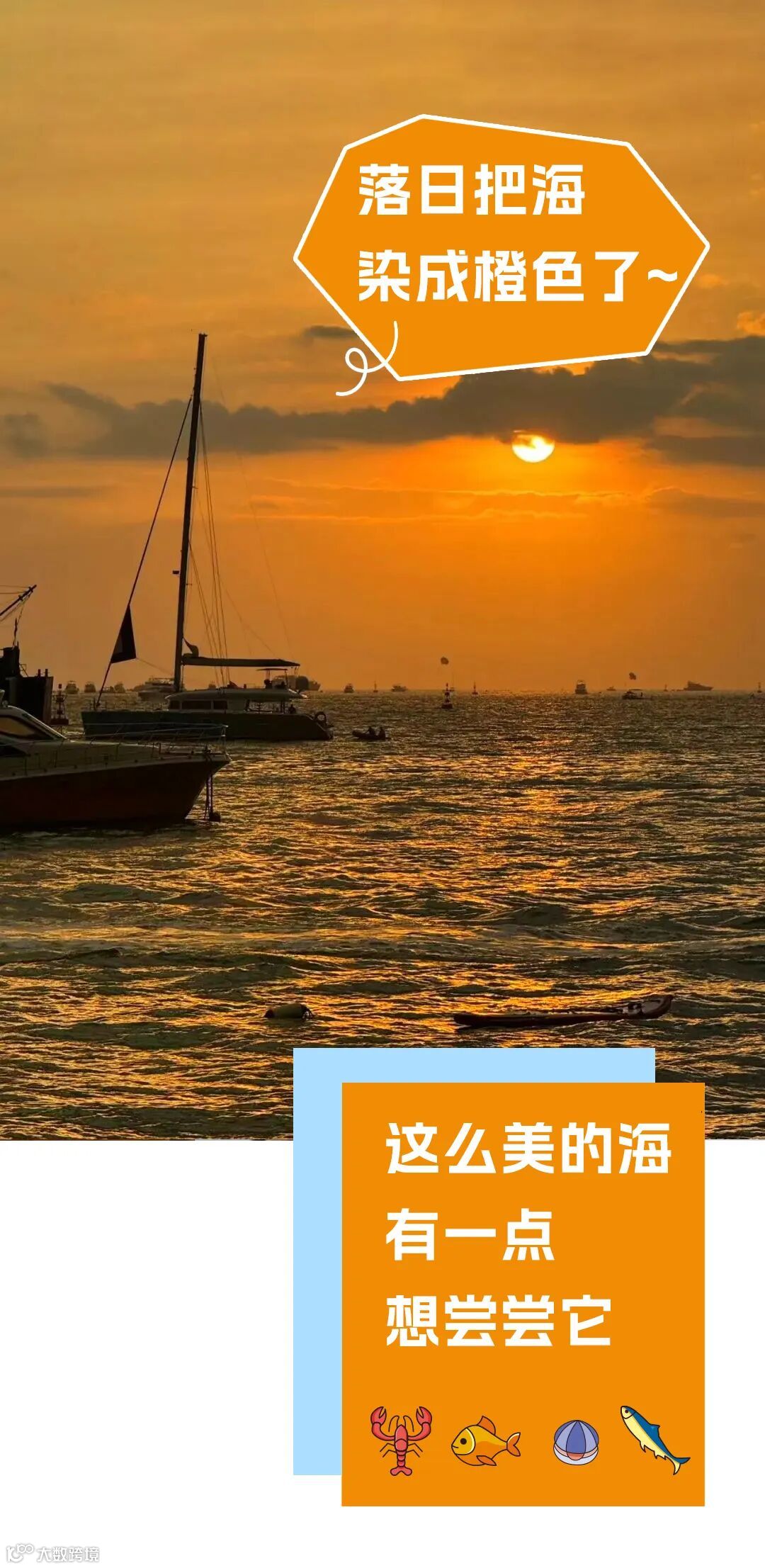 灯光渐起,夜幕降临,当最后一束日光消失,海面也逐渐黯淡,但那抹橙却不会褪色,因为人们早已将它打捞起,保存在餐桌上了。