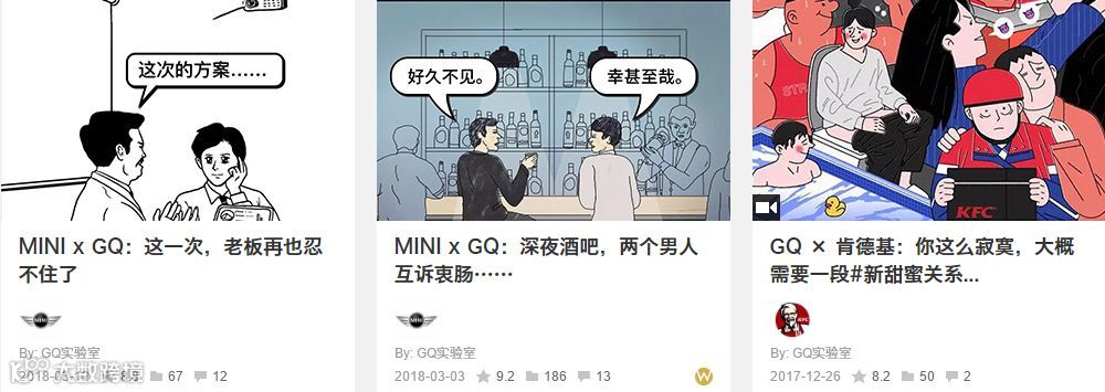 GQ实验室联合MINI的这两支广告通过漫画的形式来表现夸张的人物表情和情绪,神反转剧情、密集的梗以及自然的植入都为此次广告的火爆加分不少。