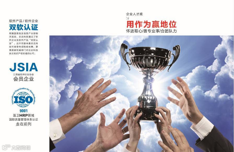 十年征程,不忘初心。志达科技经江西省工业和信息化委员会认定为软件企业,深耕医卫信息软件研发,并拥有多项自主知识产权,通过ISO9001国际质量管理体系认证,在HRP专业领域走在前列。目前,志达科技创业板组合上市稳步推进,CIS的导入使品牌形象、企业文化达到高度统一,进而产生强大的内部凝聚力、外部扩张力。目前,布局沿海发达地区启动在即,全国服务网点有序增加,志达人砥砺前行,步伐坚定而有力。