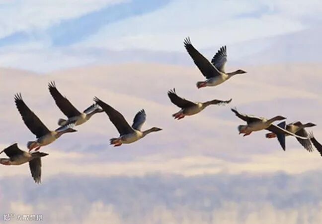 白露节气后,鸿雁结队排成人字形,纷纷由北向南飞去,寻求温暖的地方越过寒冷的冬季。