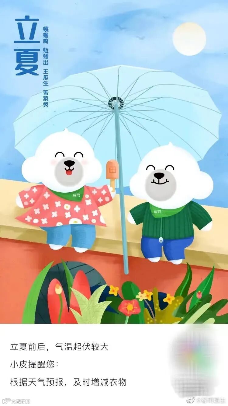 春雨医生结合立夏的天气设计海报并提醒大众注意雷雨天气。
