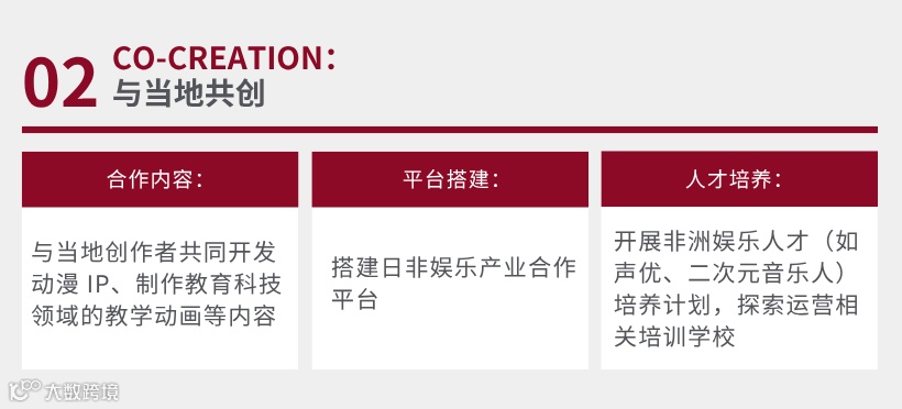 积极寻求与当地创作者的合作,共同开发动漫IP、制作教育科技领域的教学动画等内容,推动“共创”模式的繁荣。此外,公司还将致力于搭建日非娱乐产业合作平台,开展非洲娱乐人才(如声优、二次元音乐人)培养计划,并探索运营相关培训学校。