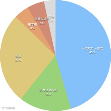 次は家で食べるの27%、オフィスで食べるのは15%にとどまっています。