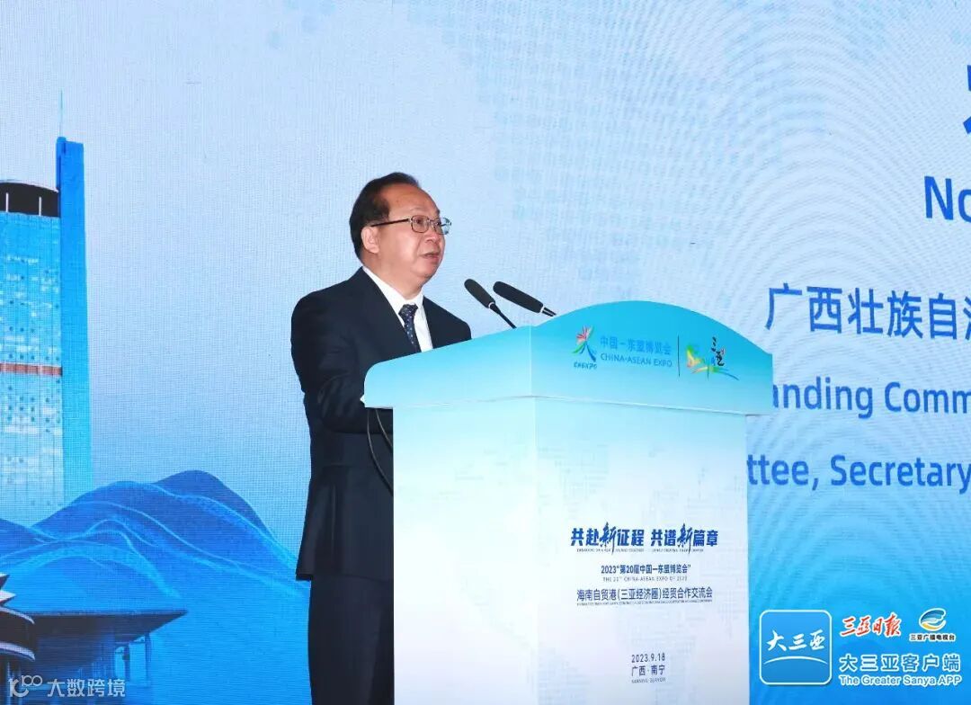 9月18日,在第20届中国—东盟博览会举办之际,海南自贸港(三亚经济圈)经贸合作交流会在广西壮族自治区南宁市举行。海南省委常委、三亚市委书记周红波,广西壮族自治区党委常委、南宁市委书记农生文出席并致辞。