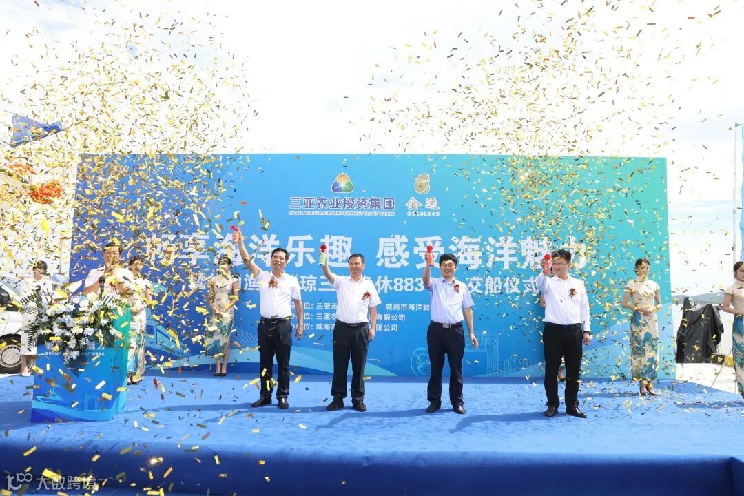 8月30日,由三亚农投集团投资,山东威海金运游艇有限公司建造,威海渔船检验部门检验的三亚首艘海洋休闲渔船“琼三亚渔休88301”在山东威海举行交船仪式。三亚市委副书记尚林,三亚市农业农村局局长柯用春,三亚市生态环境局副局长杨欣,三亚市自然资源和规划局副局长王蓓,威海市文登区委副书记刘军,威海市接待事务中心副主任张辉,威海市海洋发展局党组成员宋志明等嘉宾出席活动。三亚农投集团党委书记、董事长时亚南出席仪式并完成掷瓶礼,山东威海金运游艇有限公司董事长于文华出席观礼。