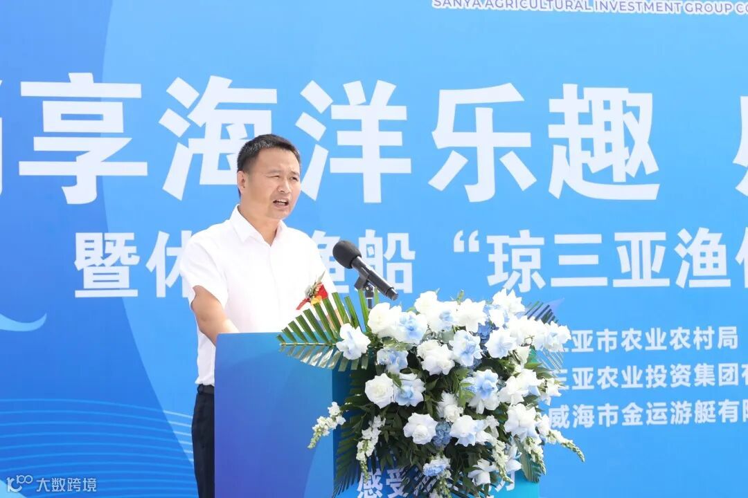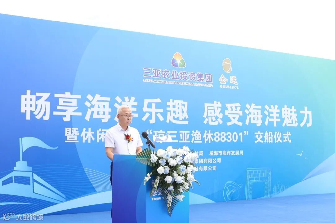 柯用春在致辞中表示,“琼三亚渔休88301”是我市统筹分配休闲渔业船网工具指标,建立完善与本地区渔业发展水平、管理能力、资源承载能力、资源利用状况相适应的船网工具指标总量控制体系后,正式建造完工的第一艘海洋休闲渔船。该海洋休闲渔船的顺利交接是我市发展休闲渔业迈出的坚实一步,是我市对休闲渔船及其产业链发展进一步优化和完善的重要体现,标志着休闲渔业产业发展的全面启航,将为休闲渔业的发展带来新的生机与活力。本次阶段性成果的取得,离不开山东威海和海南三亚两地政府的高度重视和积极支持,主管部门的精心规划和协调,渔检部门的监管和保障,以及造船厂全体员工的努力付出。