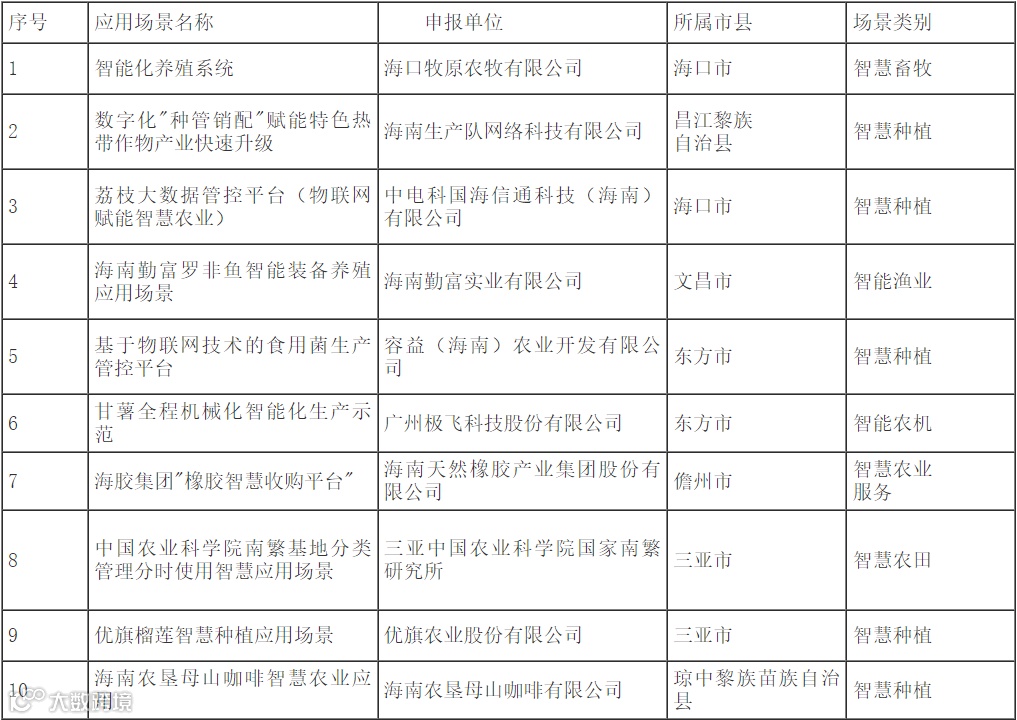 8月23日,海南省农业农村厅公示了海南省2023年度十大智慧农业应用场景名单。