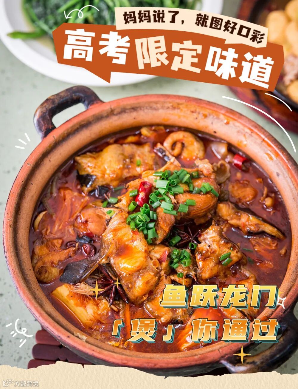 高考期间,父母的谐音梗天赋被一夜之间激发,餐桌上变得更加“讲究”。个头硕大、清香扑鼻的粽子是“一举高中(粽)”,两面金黄的烧鱼寓意“鱼跃龙门”,地瓜叶炒鸡也被冠以“状元及(鸡)第(地)”的名号.....每一道菜,都在无声的诉说他们的期许:“沾了这份好口彩,我的孩子必能金榜题名!”