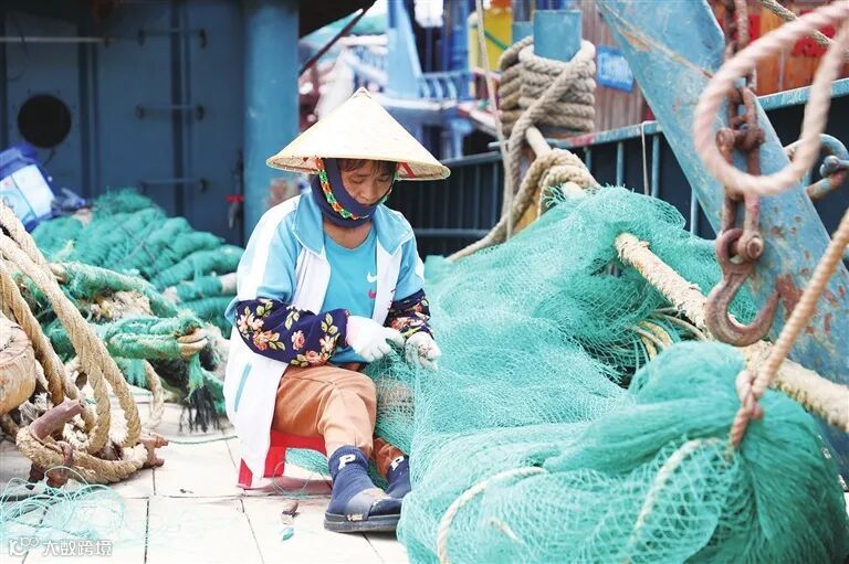 对渔民来说,伏季休渔正是渔船维修的最佳时机。这几天,不少渔民趁着休渔期加紧修补网具、修缮渔船,为以后的开渔做好准备。“这是我自己编织的螃蟹网,等开渔就可以用上了。”崖州区梅联社区渔民甘世龙说。