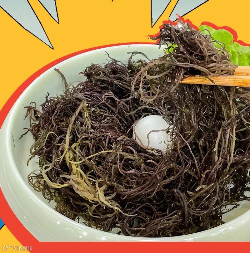 你们好,我是今天的主角——海发菜。初次见面,看到我你会联想到什么呢?我猜答案一定是——假发!能想象到,你初次在餐桌上看见我时心底的声音:“好家伙,头发也能上桌了?”不要惊慌,虽然我长相潦草,但确实可以吃。不仅可以吃,而且即将鲜掉你的舌头!