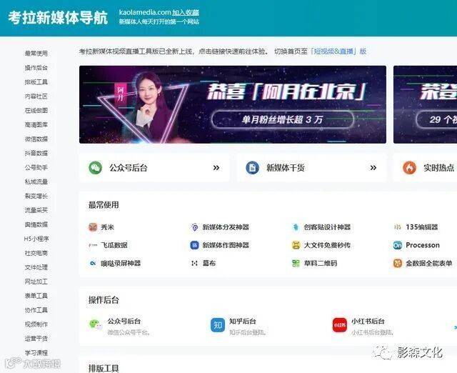 考拉新媒体其实是一个导航网站,也是我每天都会打开看看的网站,实时更新热点,并且这个网站可以找到很多实用工具。