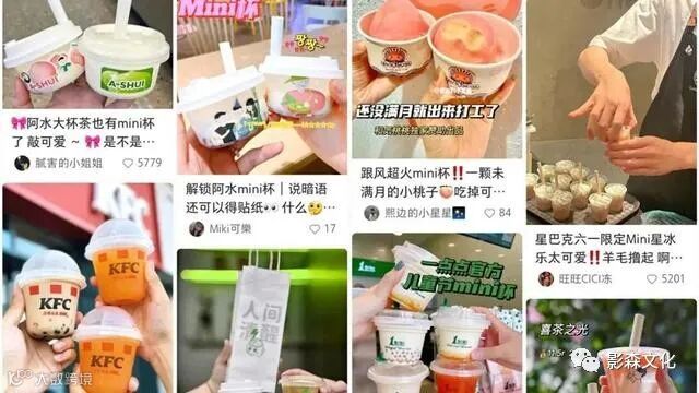 「奶茶集体变“小”」能够实现广泛的传播,同样得益于众多品牌的集体参与,小巧、可爱的杯身增加了奶茶的“社交”属性,在无颜值不社交的当下,用户纷纷在社交媒体上晒图,参与其中,从而使其成功出圈。
