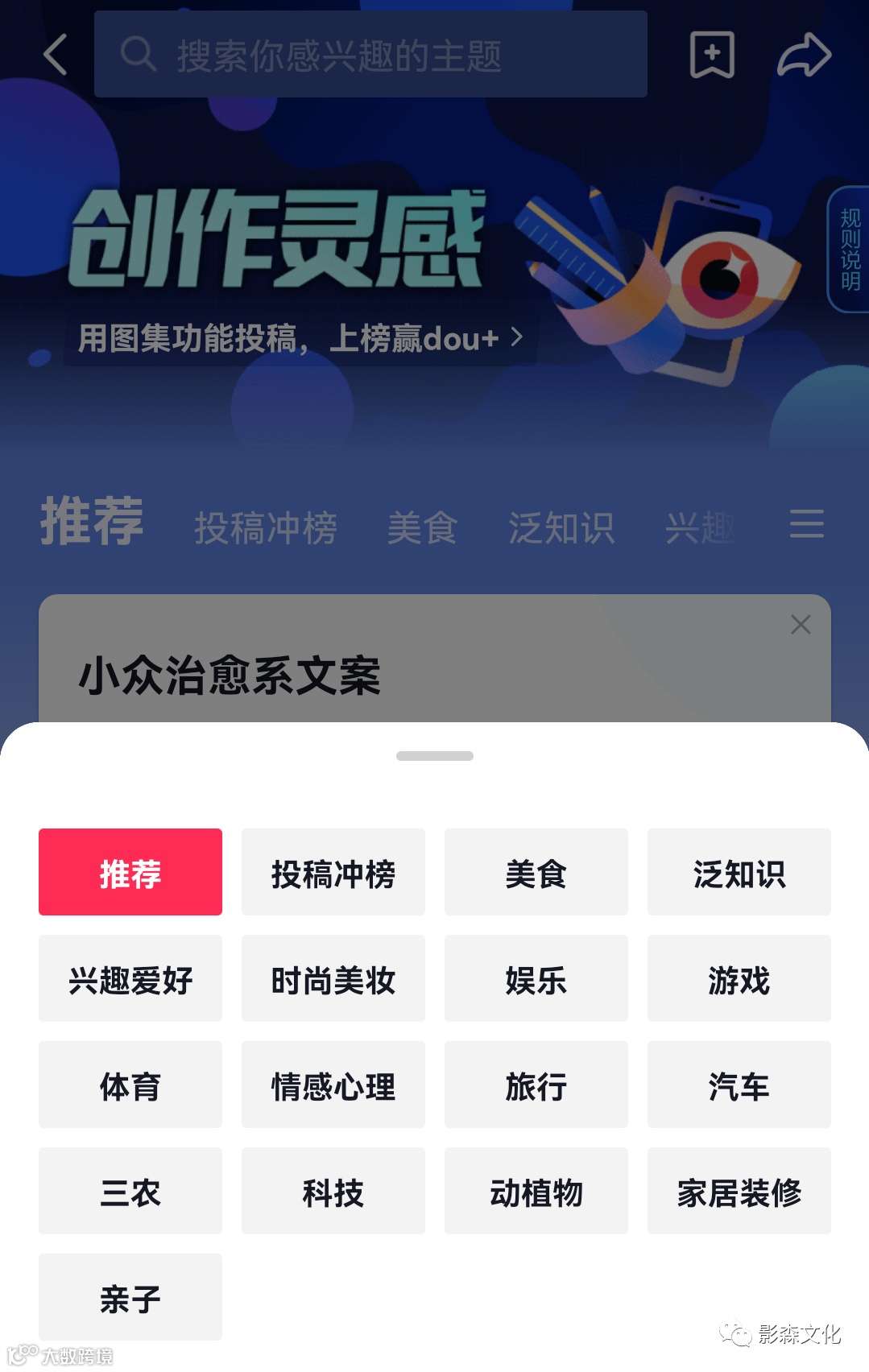 抖音会根据账号的内容类型,推荐当前适合的热门创作选题,这时,只要选择喜欢的、适合的选题,点击拍摄,上传视频,发布成功之后就可以获得对应的流量扶持。