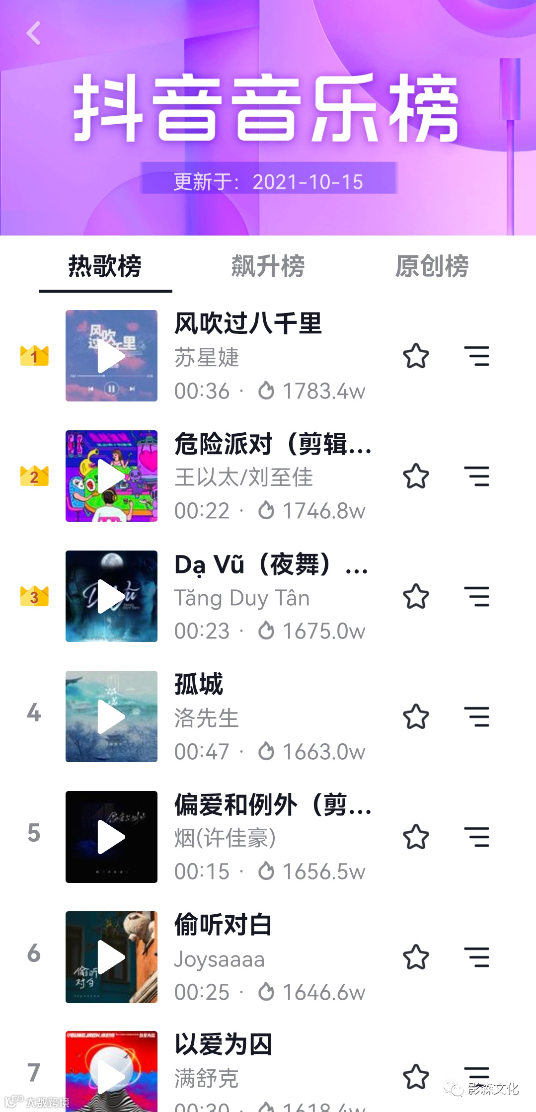 此外,搜索抖音音乐榜,还能查看近期热门音乐,包含热歌榜、飙升榜、原创榜三大类,选择喜欢的音乐,点击“拍同款”就能完美地蹭上热门音乐的流量。