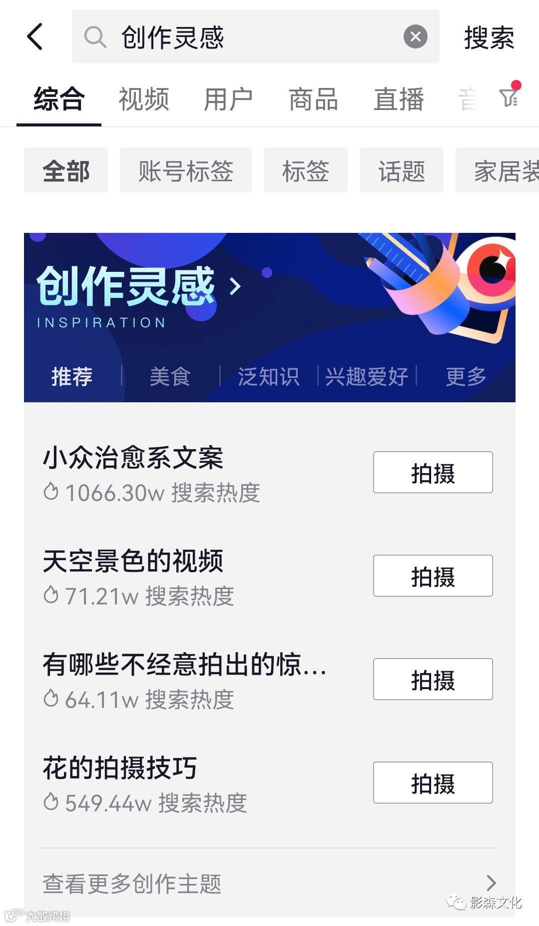 这里的创作灵感不是字面的意思,而是在抖音搜索框中输入“创作灵感”四个字,点击搜索,就可以进入创作灵感的首页。