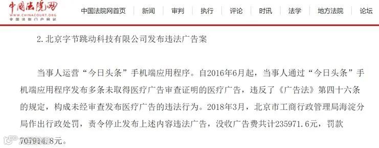 2018年3月,某APP因发布多条未取得医疗广告审查证明的医疗广告,被没收广告费23万余元,并罚款70.79万元。